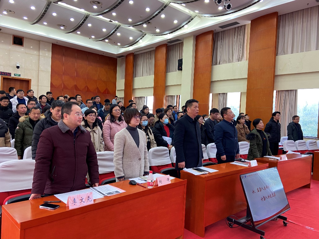 教代会代表选举大会在全体齐唱国歌声中开幕。会上宣读了《公司教职工代表大会选举办法》提交大会审议。该选举办法经大会现场举手表决,全体通过。随后大会审议通过了监票人和计票人名单,经大会审议举手表决,全体通过11位候选人建议名单。