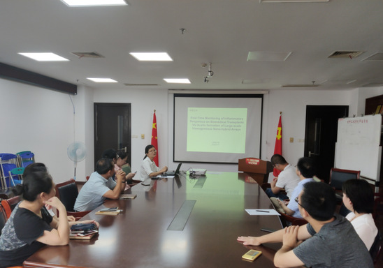 何亮老师主要围绕生物材料表面纳米阵列实时检测生物标志物的研究,以及在美国罗格斯大学访学期间的相关工作进行了介绍。