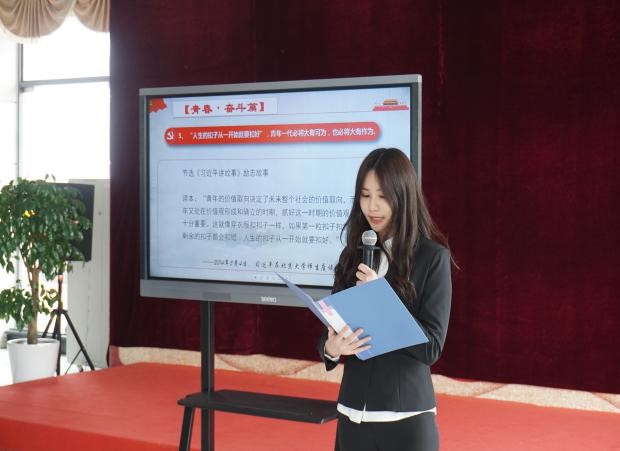 接着,管理公司员工党员马小嫚与电子电气工程公司员工党员王毅分享了他们“青春·奋斗”的故事:“人生的扣子从一开始就要扣好,青年一代必将大有可为,也必将大有作为”、“行百里者半九十,青年要毫不懈怠地努力奋斗”。点评嘉宾阮晓栋老师引用习近平总书记的一句话,当代中国青年一定能够担当起党和人民是赋予的责任赋予的历史重任,引导同学们应该坚持社会主义核心价值观;李柳维娜老师寄语各位员工党员要牢牢把握当前大展才华的好机会,孜孜不倦地努力拼搏,为国家的发展和建设贡献自己的青春和力量,把追求的目标转变为奋发向上、顽强拼搏的动力,用自己的实际行动将目标变为现实。