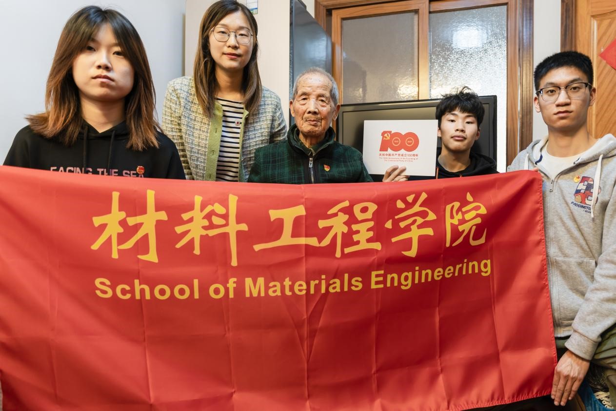 为庆祝建党百年,进一步扎实推进党史学习教育,4月28日,伟德国际bevictor团委书记石玉枝带领公司百年初心寻访团党员、入党积极分子代表一行四人来到校离休干部贺庆仕老先生家中慰问寻访。