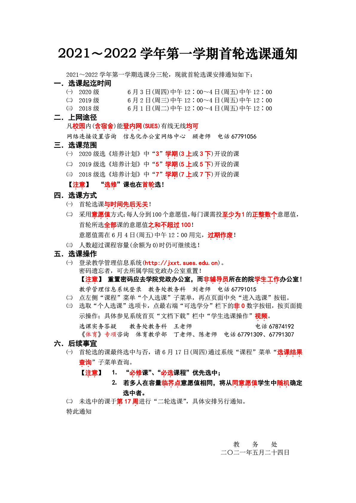 2021~2022学年第一学期首轮选课通知