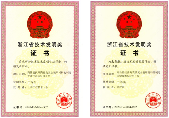 近日,浙江省人民政府公布了2020年度浙江省科学技术奖的获奖名单,伟德国际bevictor林文松教授与合作单位浙江立泰复合材料股份有限公司的成果“高性能抗弹陶瓷及复合装甲材料的制造关键技术与应用开发”喜获浙江省技术发明二等奖。