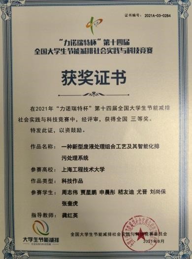 龚红英教授指导科研小组员工们,经过近半年时间的悉心筹备,从刚开始对赛题的宏观认识,专业的突破,成员精心合作,调研市场,合理规划,进行系统的优化和改进,最终设计出占地面积不大、结构紧凑的“智能化排污处理系统”。该智能化排污系统充分利用低成本、来源广的材料,并可多次使用,符合节能减排的设计理念。
