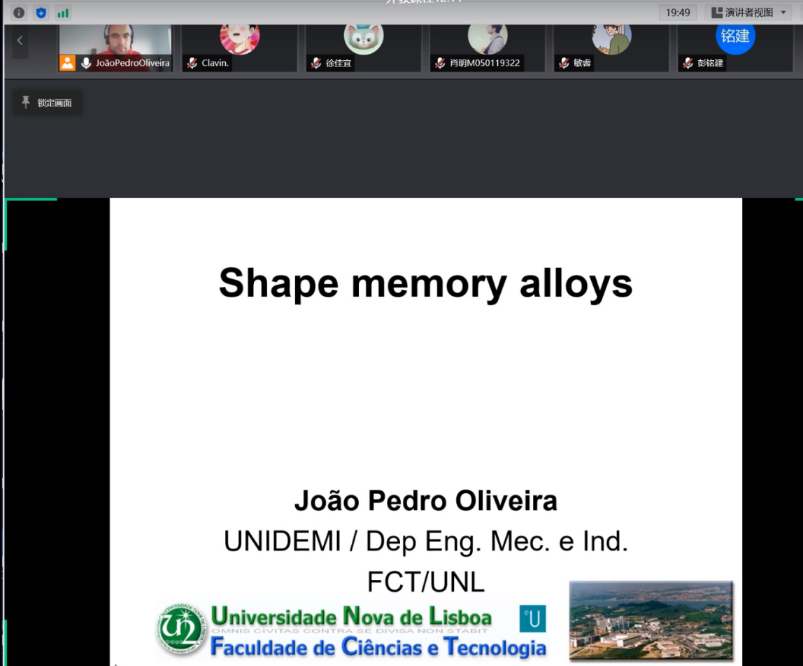 2021年12月11日,葡萄牙新里斯本大学Joao Pedro Oliveira(JPO)教授受邀为公司研究生开展了一堂以“形状记忆合金”为主题的线上学术讲座,讲座主持人伟德国际bevictor杨瑾副教授,公司员工也积极参与本次讲座(如图1所示)。