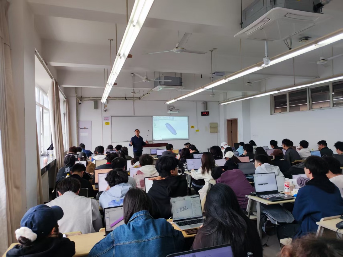 严冰涛高工长期致力于非标机械自动化设计开发与制造,其项目经验横跨汽车、制药、纺织等多个行业。本次讲座中,严工聚焦工程领域广泛应用的SolidWorks机械制图软件,以“理论精讲+案例实操”相结合的方式展开教学。通过精心选取的数个来自其工作一线的典型项目实例,一步步为员工演示如何将抽象的设计构思转化为精准的数字化模型,并深入剖析了设计过程中的关键要点与规范标准。这种基于真实项目的教学,使员工们深刻理解了CAD技术在产品设计、模拟分析与智能制造中的核心作用,将课程中的“AI+材料”计算知识与工程实践无缝链接。