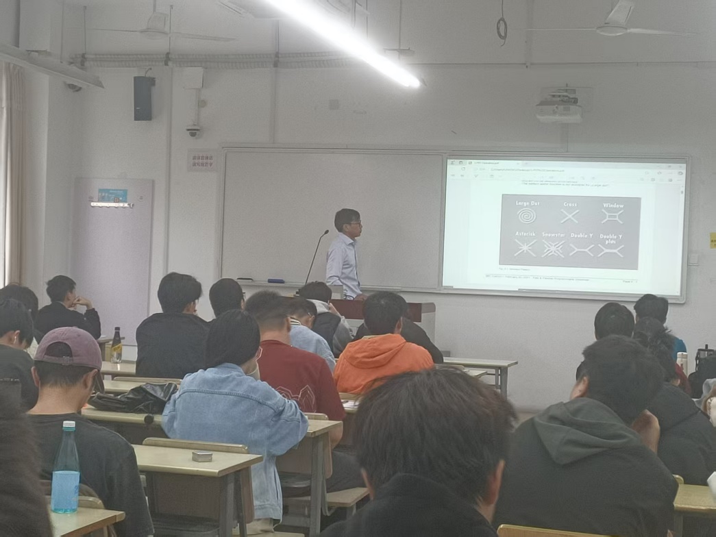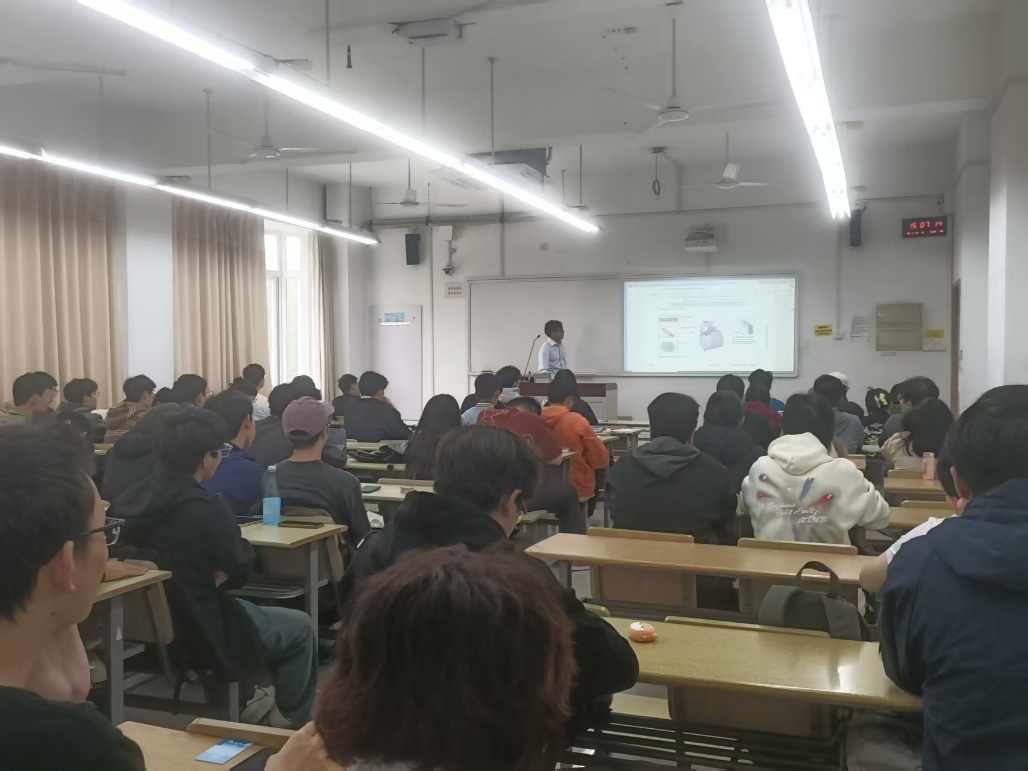 点胶工艺广泛应用于半导体制造、电子元件、LED封装、汽车零部件、医疗器械、日常用品制造等诸多领域,扮演着至关重要的角色。张根元总经理结合自身在点胶工艺领域多年深耕的丰富经验,从点胶的定义与别名、核心应用、关键工艺与设备、具体方法以及中常见的问题等多个维度,进行了深入浅出的讲解,使同学们对点胶工艺及设备的现状与未来趋势有了直观而深刻的认识。张总还特别针对各种点胶图形的成因及实际操作中应注意的问题,还有点胶过程中用到的化学知识进行了细致阐述。在互动环节,师生围绕点胶工艺相关议题与张总进行了热烈交流。面对同学们的踊跃提问,张总一一给与了详尽而中肯的解答。