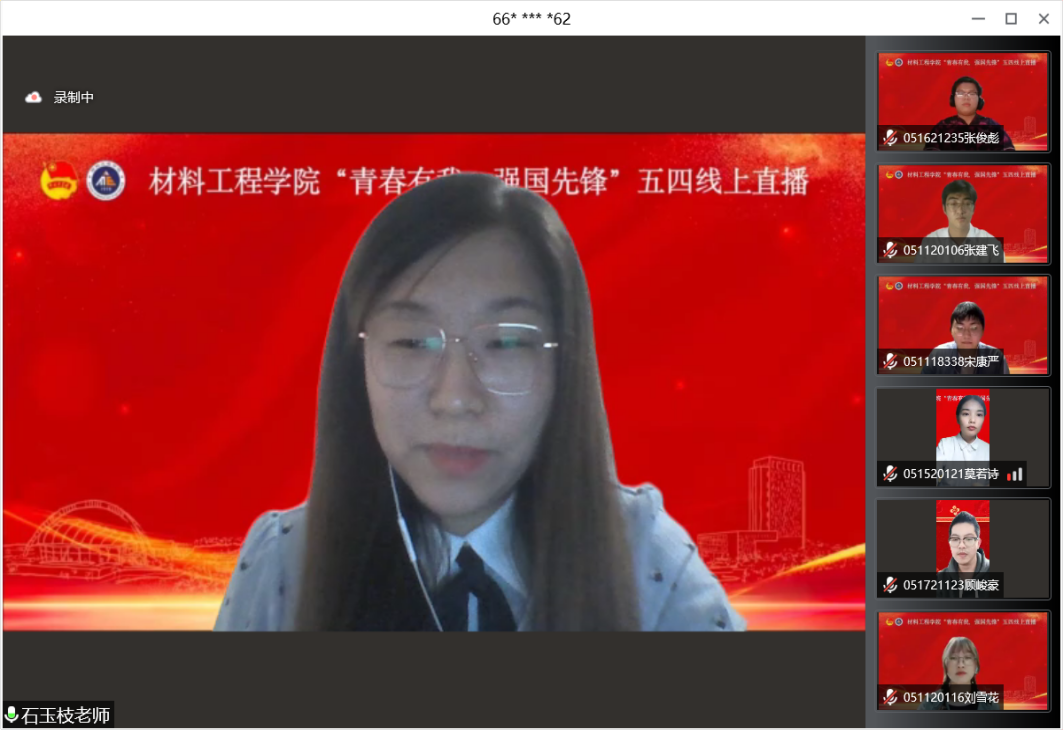 今年是中国共产主义青年团成立100周年,5月4日,伟德国际bevictor团委于腾讯会议举办“强国先锋,青春有我”庆祝建团100周年线上直播活动。公司党委副书记黄中子老师、院团委书记石玉枝老师与全院320余名团员青年一起共度节日。活动由院团委组织部郭胤君和胡家豪同学主持。
