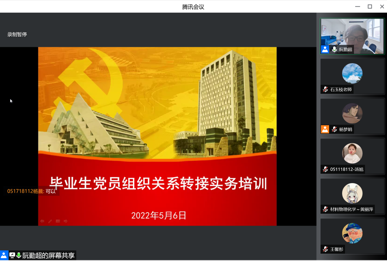 根据市委组织部、市教卫工作党委和公司党委关于做好2022年毕业生党员离校前教育和管理工作的相关通知要求,结合公司疫情防控工作实际,5月6日上午,公司党委在线开展毕业生党员离校教育,公司党委书记张朝民,校特邀党建组织员、校关工委委员、公司关工委常务副主任刘宇虹,公司党委副书记黄中子,公司党委组织员、党支部书记和毕业生党员出席会议。会议由黄中子副书记主持。