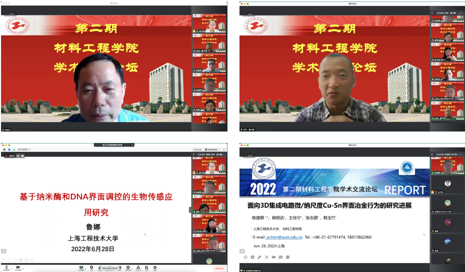 会上,由各系室中心推选的科研能手做专题报告。电子封装与技术系鲁娜教授做题为《基于纳米酶和生物分子结合界面的生物传感应用研究》报告,鲁教授基于一维无机纳米复合材料的类过氧化物酶活性,构建了比色型生物传感器用于蛋白质超灵敏检测;提出不同结构核酸分子作为配体,设计不同的生物纳米界面,实现对无机纳米酶催化活性高精度可控调节和基因快速检测;采用不用组装方式构建了不用纳米酶生物界面,有效提高了生物界面对于细菌的亲和性和识别能力。焊接技术与工程系陈捷狮副教授做题为《面向3D集成电路微/纳尺度Cu-Sn界面行为研究进展》报告,就固液界面Cu-Sn的生长、固态老化、生长动力学等方面做了综述,并指出三维集成电路封装应重点关注尺寸效应带来的界面冶金效应行为,识别界面生长动力学的主导生长机制。杨瑾副教授做题为《异质材料激光焊研究进展》报告,就焊接热循环调控、元素合金化调控、界面多孔化调控、润湿与反应机理、动载荷服役条件和应力测试与调控等方面进行了综述。左舜贵博士做题为《形状记忆合金内耗行为研究》报告,着重就形状记忆合金及内耗的研究背景、应变玻璃和MnCu合金内耗行为等进行了报告。李方杰博士做题《面向未来的材料重器——高熵合金:性能、应用与展望》报告,介绍了团队在高熵合金方面的系列研究进展。兰亮博士做题为《电子束熔化成形钛合金低周疲劳变形下微观结构特征及循环响应行为》报告,介绍了增材制造钛合金低周疲劳的国内外研究现状及电子束熔化成形钛合金低周疲劳行为的最新科研进展。高双博士做题为《激光选区熔化IN625镍基高温合金长期时效组织及性能演变规律研究》报告,介绍了IN625镍基高温合金的国内外研究现状,并展示了实验结果。