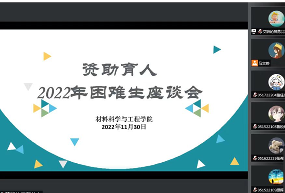 为落实立德树人根本任务,充分发挥高校员工资助工作的育人功效,11月30日,材料公司召开了2022年“资助育人”困难生代表座谈会,公司员工资助辅导员艾昕、思政辅导员马文婷和来自各专业的困难生参加了此次座谈会。