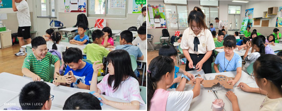 用科学实验课程培养动手能力。在材料实验课程中,小员工们分组进行材料科学实验,通过制作实验器材,实操实验过程,亲身感受材料的性质和变化,从而感受实验带来的神奇和乐趣。在实验的互动实践中,更加深入地了解了材料科学的原理和应用,同时锻炼了动手能力和沟通协作能力。