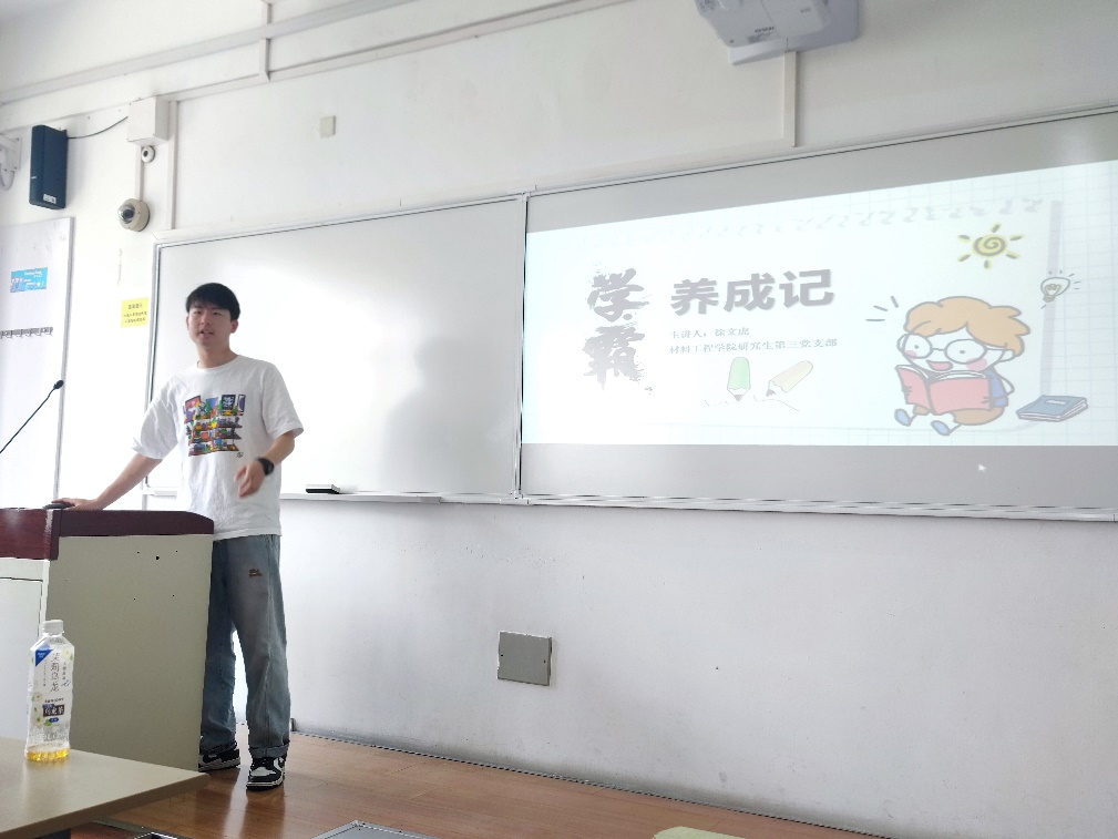 学业领航,助梦成长。支部党员徐文虎同志曾获研究生国家奖学金、上海市优秀毕业生、学习之星等荣誉称号,从自身经历出发,引导员工全面认识自己,把握现在,利用“学霸养成记”专题分享会、一对一科研指导来帮扶身边的同学们;支部党员罗钟毅、胡志国、程文浩等同志积极主动在实验操作、文献阅读、科研规划等方面进行开讲,帮扶低年级的员工,助力学弟学妹们学业进步。