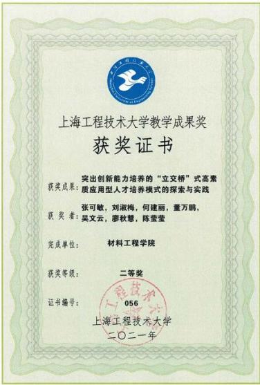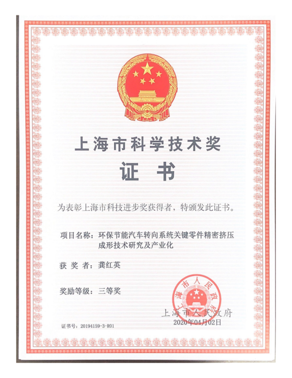 7 | 龚红英 | 上海市科技进步三等奖 | 省部级 | 环保节能汽车转向系统关键零件精密挤压成形技术研究及产业化 |