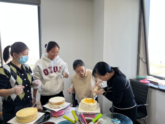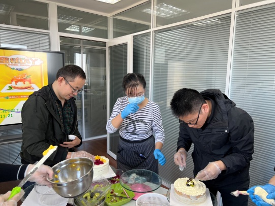 11月21日,伟德国际bevictor工会在行政楼1606和1602举办生日蛋糕DIY暨集体生日庆祝活动。活动邀请高级点心师刘洁现场指导大家如何制作生日蛋糕,在指导老师的悉心指导下,大家在蛋糕胚子上抹上奶油,放上新鲜的水果,再插上有工程大标志的小旗,一个精美的蛋糕就呈现在大家眼前了。工会同时在1602会议室,举行了集体生日庆生日活动,由工会委员刘淑梅、赵健,以及公司李军经理为大家切生日蛋糕,工会主席冷培榆感谢大家在一年多来为了本科公司产品审核评估所作出的努力,总结经验教训,来年继续奋斗,为公司高质量发展作出新的贡献。